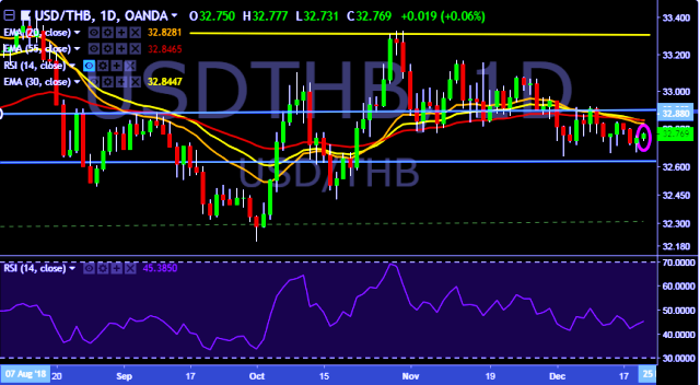 We prefer to take long position on USD/THB around 32.75, stop loss at 32.67 and target of 32.83/32.92.