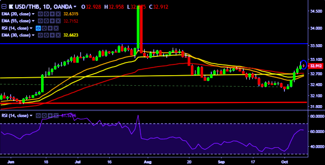 We prefer to take short position on USD/THB only below 32.85, stop loss 33.00 and target of 32.68/32.46.