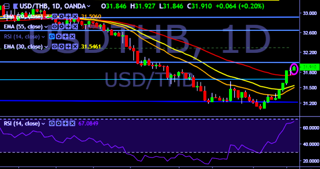 We prefer to take long position on USD/THB around 31.87, stop loss at 31.72 and target of 32.02/32.10 mark.