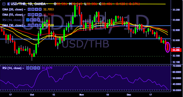 We prefer to take short position on USD/THB around 32.45, stop loss at 32.70 and target of 32.20.