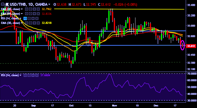 We prefer to take short position on USD/THB around 32.65, stop loss at 32.80 and target of 32.42/32.20.