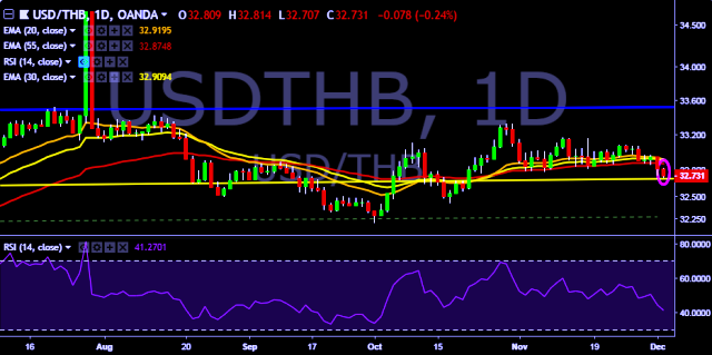 We prefer to take short position on USD/THB around 32.75, stop loss 32.94 and target of 32.68/32.57.