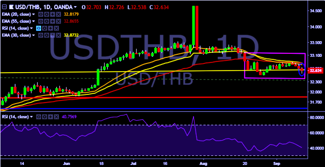 We prefer to take short position on USD/THB around 32.65, stop loss at 32.83 and target of 32.18.