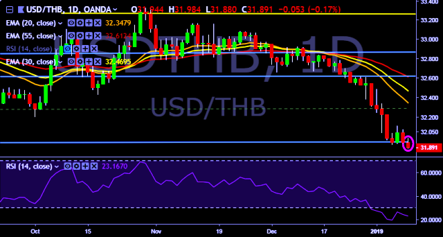 We prefer to take short position on USD/THB around 31.92, stop loss at 32.07 and target of 31.60.