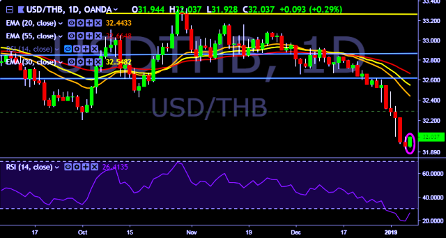 We prefer to take short position on USD/THB around 32.07, stop loss at 32.22 and target of 31.85/31.60.