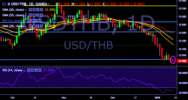 We prefer to take short position on USD/THB around 31.92, stop loss at 32.10 and target of 31.60.