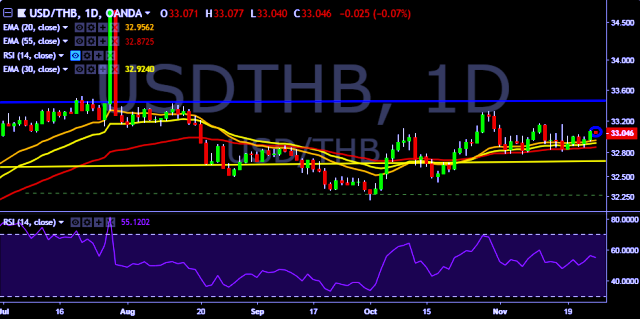 We prefer to take long position on USD/THB only above 33.07, stop loss 33.00 and target of 33.15/33.32.