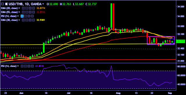 We prefer to take long position n USD/THB only above 32.90, stop loss at 32.65 and target of 33.20.