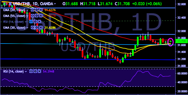 We prefer to take short position on USD/THB only below 31.58, stop loss 31.70 and target of 31.42 mark.