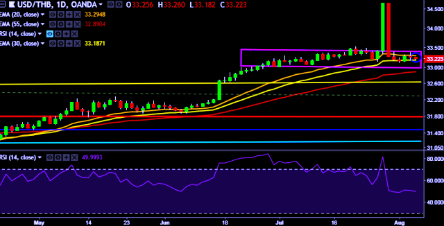 We prefer to take short position on USD/THB only below 33.15, stop loss at 33.40 and target of 33.02/32.90.