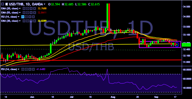 We prefer to take long position on USD/THB only above 32.90, stop loss at 32.50 and target of 33.52.