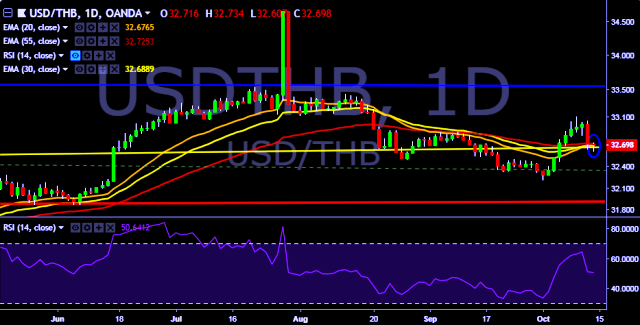 We prefer to take short position on USD/THB around 32.72, stop loss 32.90 and target of 32.46/32.27.