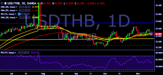 We prefer to take short position on USD/THB only below 32.78, stop loss 33.02 and target of 32.42.