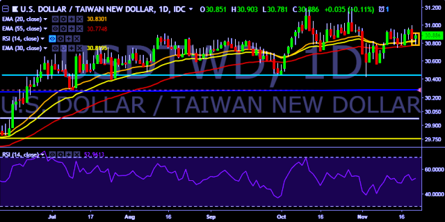 - USD/TWD is currently trading around 30.90 marks.