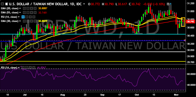 We prefer to take long position on USD/TWD only above 30.80, stop loss at 30.50 and target of 31.02/31.18/31.42.