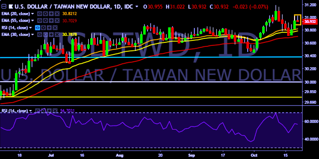 We prefer to take long position on USD/TWD only above 31.02, stop loss at 30.70 and target of 31.42.