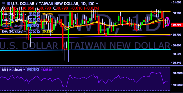 - USD/TWD is currently trading around 30.81 marks.