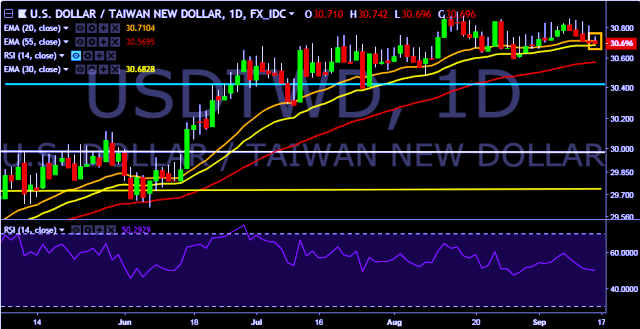 We prefer to take short position on USD/TWD around 30.72, stop loss at 30.90 and target of 31.40.