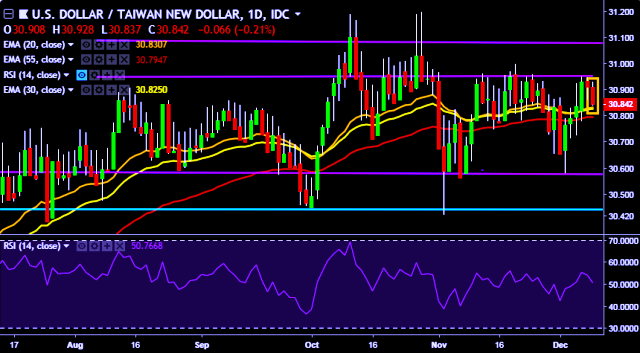We prefer to take long position on USD/TWD only above 31.02, stop loss at 30.70 and target of 31.18/31.42.