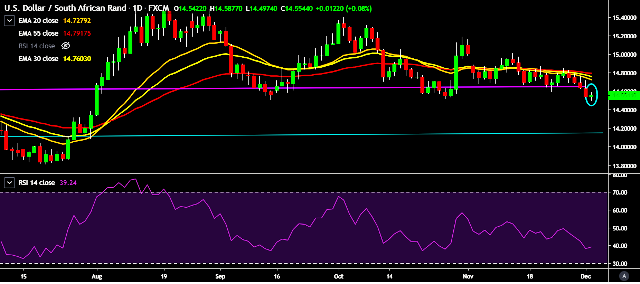 - USD/ZAR is currently trading around 14.56 levels.