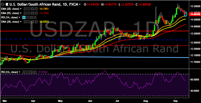 We prefer to take short position on USD/ZAR around 14.92, stop loss at 15.08 and target of 14.70.