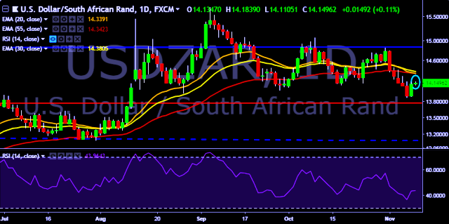 We prefer to take long position on USD/ZAR around 14.15, stop loss at 14.02 and target of 14.50.