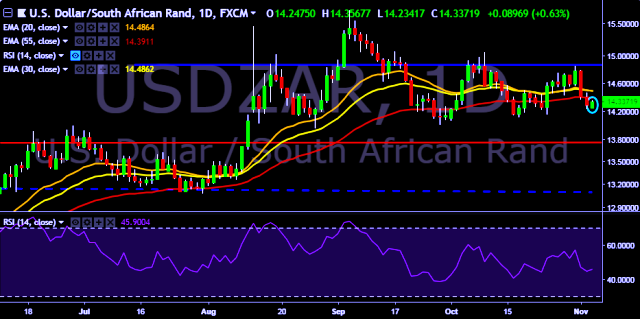 We prefer to take short position on USD/ZAR around 14.32, stop loss at 14.40 and target of 14.22/14.02.