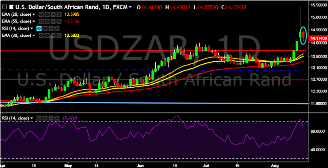 We prefer to take long position on USD/ZAR only above 14.44, stop loss 14.00 and target of 15.00.