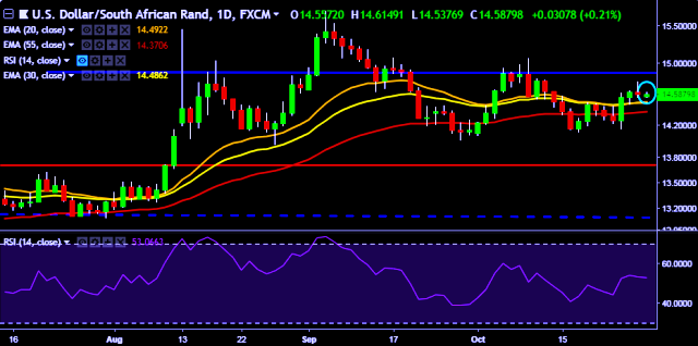 - USD/ZAR is currently trading around 14.58 levels.