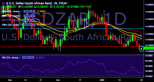 We prefer to take short position on USD/ZAR only below 13.58, stop loss at 13.70 and target of 13.26.