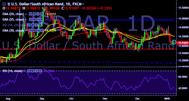 We prefer to take short position on USD/ZAR around 13.92, stop loss at 14.12 and target of 13.53.