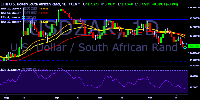 We prefer to take short position on USD/ZAR only below 13.72, stop loss at 13.94 and target of 13.40.