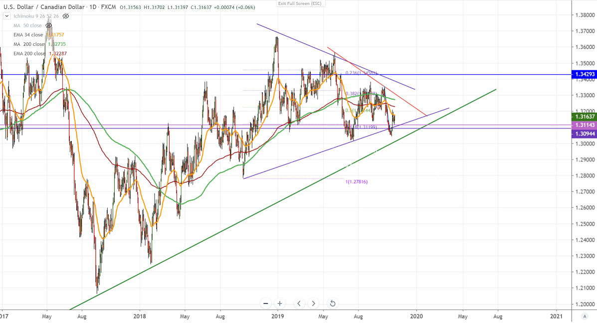 USDCAD is trading higher for past 1-week and jumped more than 150 pips on hawkish BOC monetary policy. The central bank has kept its rates unchanged, hinted for a rate cut in the coming months as an economy to slowdown on the trade war. It hits a high of 1.32083 and is currently trading around 1.31599.