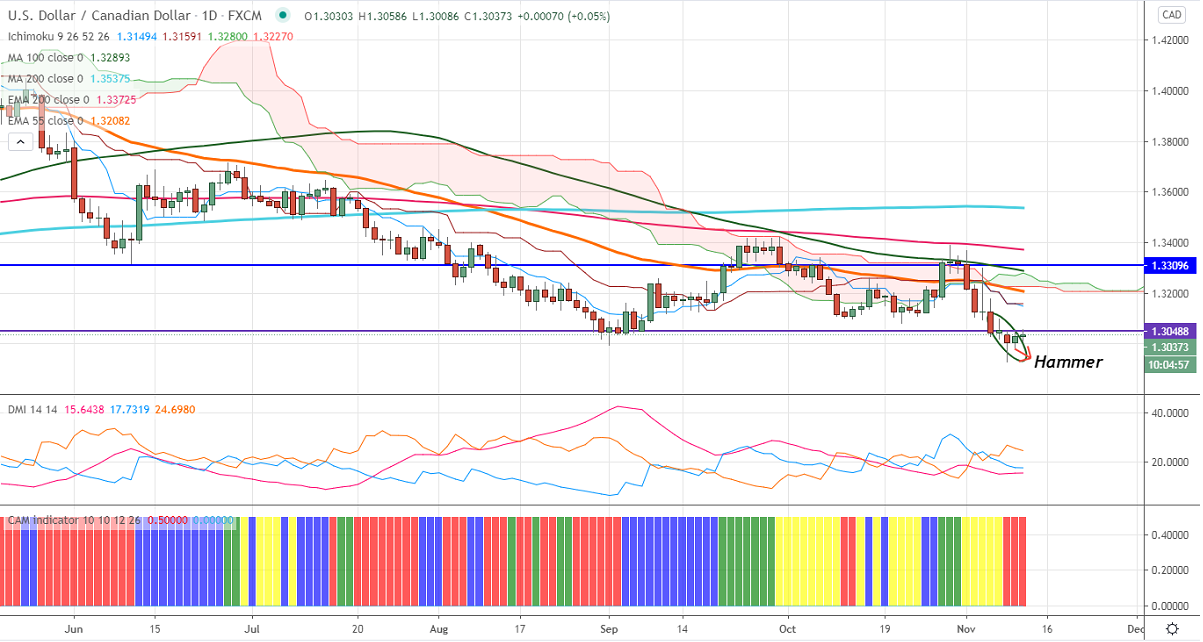 USDCAD has halted it's one –week bearish trend and shown a minor recovery. The surge in the number of coronavirus cases is has increased demand for Safe-haven assets like the US dollar. DXY has shown a minor recovery after hitting a low of 92.18. The short term trend is still bullish as long as support 92 holds. Loonie hits an intraday high of 1.29551 and currently trading around 1.29551.