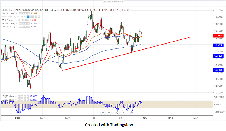 USDCAD has slipped more than 100 pips yesterday after hawkish rate hike by Bank of Canada. BOC governor hiked interest rates by 25 basis point to 1.75% yesterday. The central bank was optimistic on the economy after new trade agreement between US ,Mexico and Canada and stated that further rate hike to come. The pair hits low of 1.2965 and is currently trading around 1.30279.