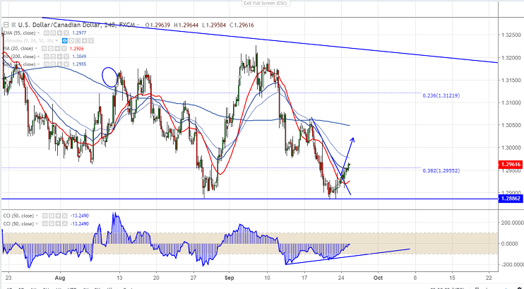 Oil prices jumped sharply almost 2% till $72 on Iran sanctions and global oil supply. It is trading above $72 and a jump till 74 is likely. The sudden jump in oil price is supporting Canadian dollar.