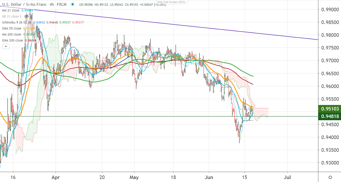 In the 4- hour chart, the pair is struggling to close above 0.95350 (55 EMA), any indicative close above will take to till 0.9580/0.96250/0.96410 (200-4H MA).
