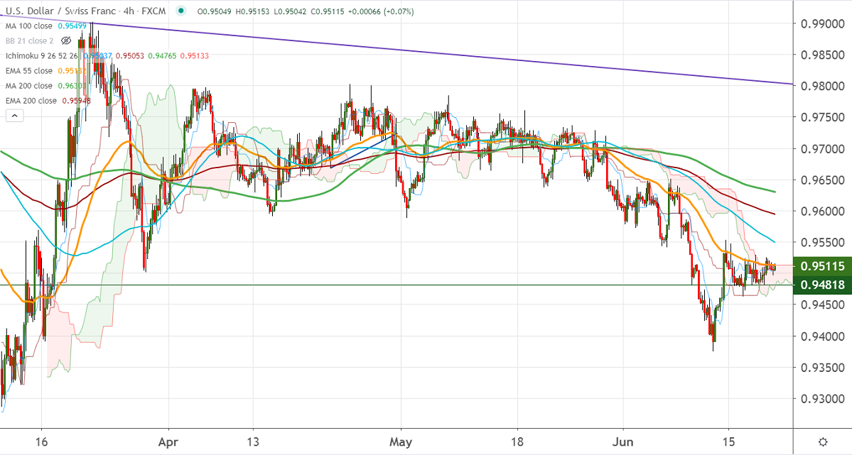 In the 4- hour chart, the pair is struggling to close above 0.9550 and any indicative close above will take to till 0.96250 (200-4H MA)/0.9650.