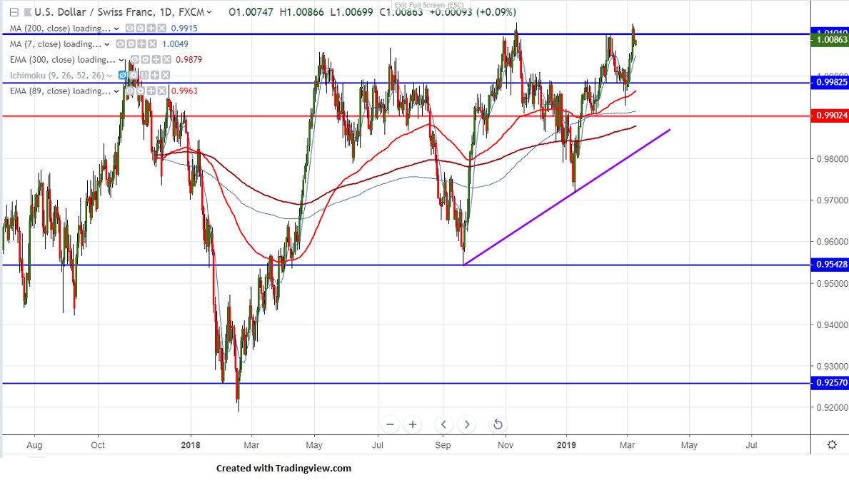 The major trend reversal resistance is around 1.01285 high made on Nov 13th 2018 and any violation above confirms trend reversal. Any break above targets 1.0175/1.03400.