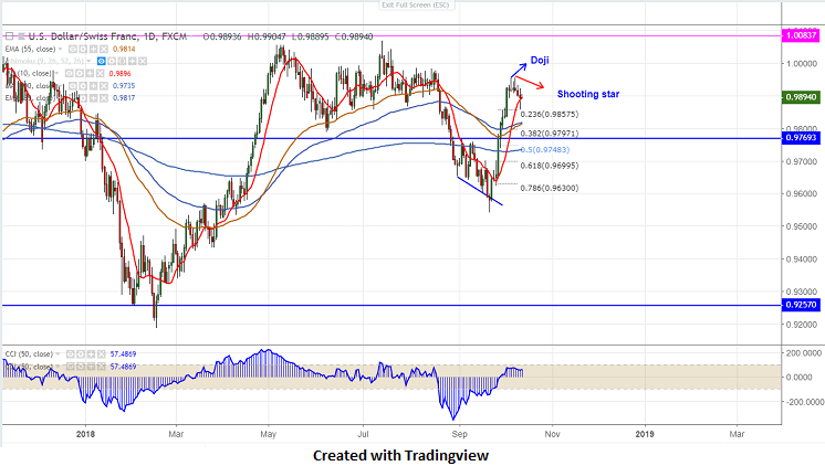 USDCHF has recovered once gain after hitting low of 0.9855 level. The pair jumped till 0.99225 and is currently trading around 0.9900.USD was trading higher against Swiss franc for past 10 trading days and has jumped almost 400pips . Swiss franc gained momentum and jumped more than 100 pips on account of geo political tensions in Italy and trade war worries between US and China has increased demand of safe haven currencies like Yen,Swiss franc.