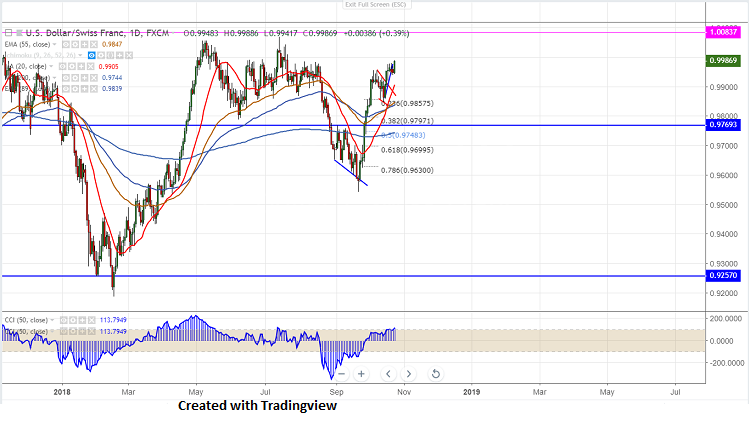 The near term resistance is around 1.000 and any break above targets 1.00680 high made on Jul 13th 2018. Any break above 1.00680 confirms further bullishness.