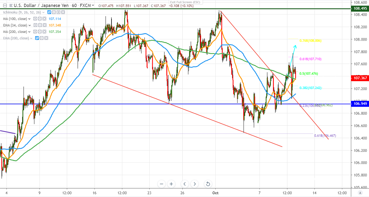 The near term support is around 107.40 and any break below will drag the pair to the next level till 107/106.40.