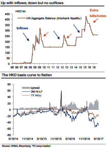 Flush HKD liquidity would likely avert HKDUSD rate spreads and the forward points from rebounding in the near-term. Investors may continue to prefer selling forward while potentially buying spot as a protection. There is also demand for USD, from time to time, across Asian markets. When these USD needs are not satisfied by the primary market (bond issuance) or bank loans (in turn funded by deposits), market participants may turn to the money market.