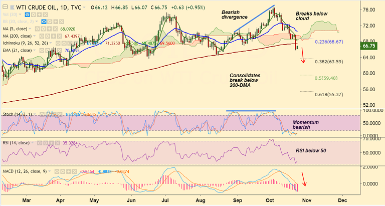 Recommendation: Good to stay short on upticks, SL: 67.50, TP: 66/ 65.35/ 64.50