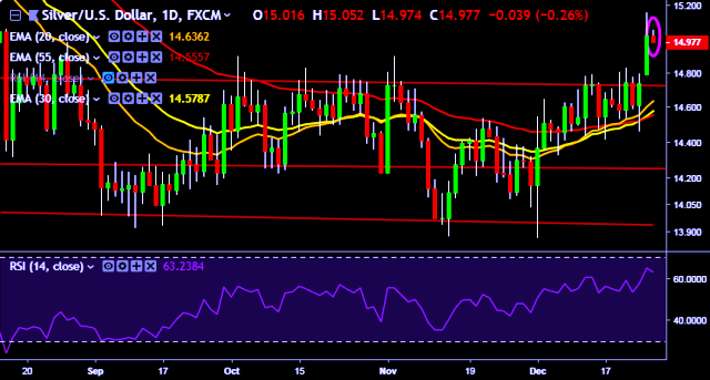 - A daily close above $15.01 will test key resistances at $15.15, $15.27 and $15.42 marks respectively.