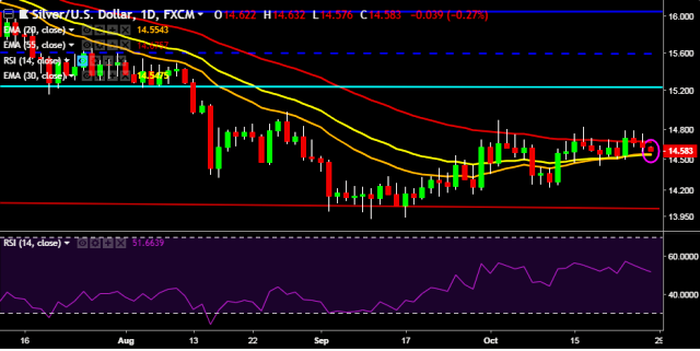 We prefer to take short position on XAG/USD only below $14.57, stop loss $14.70 and target of $14.42/$14.35.