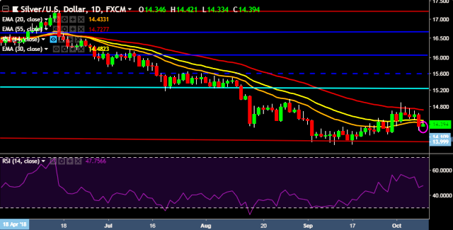 - XAG/USD is currently trading around $14.38 marks.