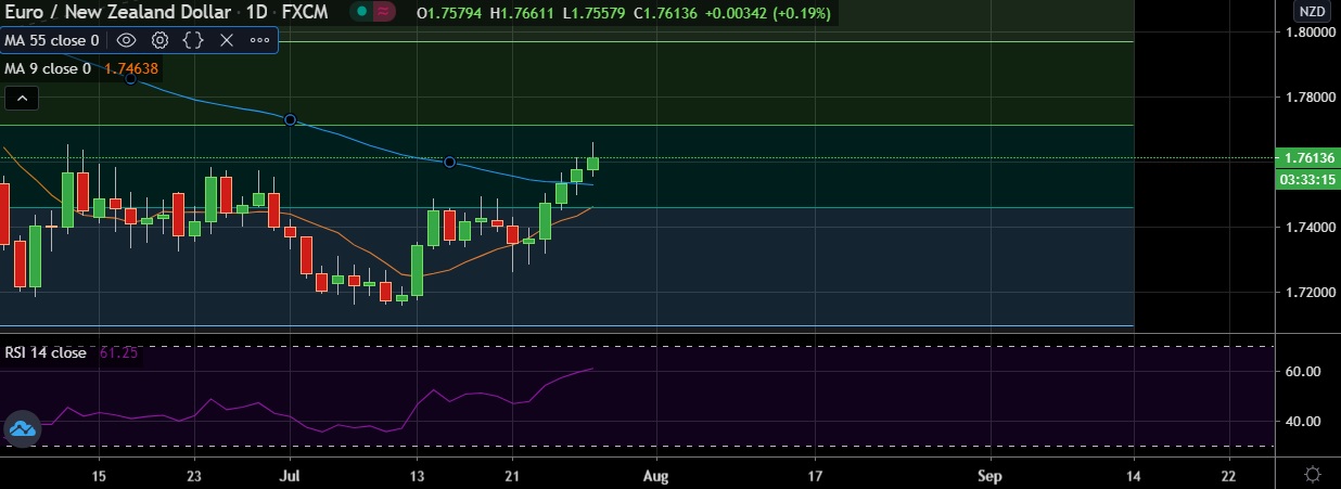• Strong support is seen at 1.7535 (55 DMA) and break below could take the pair towards 1.7458(61.8% fib )