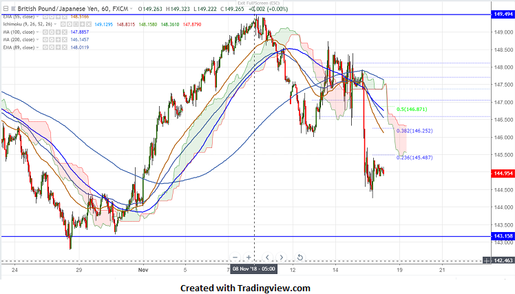 GBPJPY has shown a major sell-off yesterday after resignation of Brexit Minister Raab. GBP was trading extremely weak against all majors and lost more than 300 pips against USD. GBPJPY hits low of 144.24 and is currently trading around 144.98.