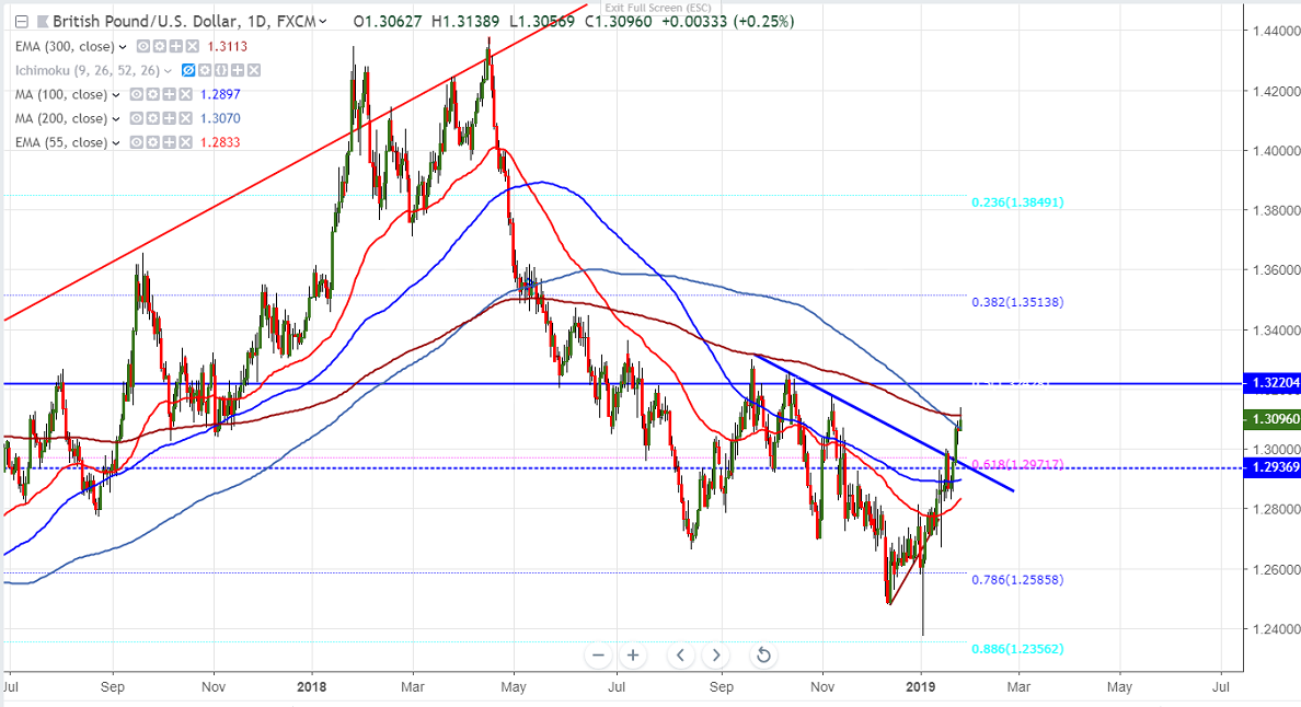 GBP/USD was trading higher and jumped more than 6% from low of 1.23730 due to Brexit uncertainty. UK PM May has lost Brexit vote in House of Common by 230 votes but won No confidence vote in narrow margin. The pair hits high of 1.3135 at the time of writing and is currently trading around 1.30880.